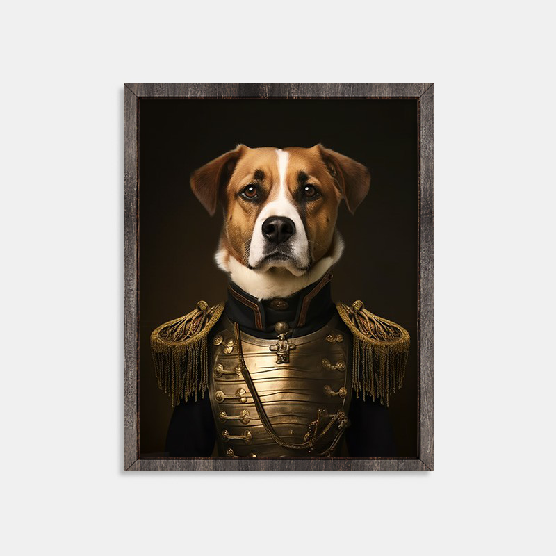 بريق الدرع الذهبي: صورة شخصية للحيوانات الأليفة ترتدي روعة مذهبة