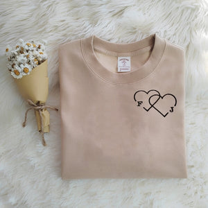 Benutzerdefinierter Buchstaben besticktes Doppel -Herz -Sweatshirt