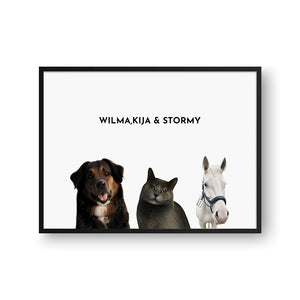 Drei Haustiere Porträt: individuelles Trio entzückender Begleiter