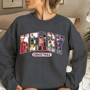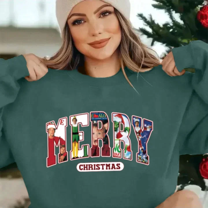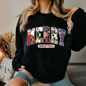 Message: Embrace the warmth of the holiday season with this playful "Merry Christmas" sweatshirt inspired by your favorite movie characters! Inspired by classic Christmas films, this sweatshirt perfectly captures the magic and cheer of the festive season. Whether you're hosting a family gathering, enjoying outdoor activities, or cozying up for a movie night, this sweatshirt is your ideal companion.